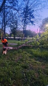 Vântul puternic a pus la pământ mai mulți copaci în municipiul Galați, iar echipele Gospodărire Urbană au intervenit până seara târziu pentru a curăța zonele în care arborii s-au prăbușit.