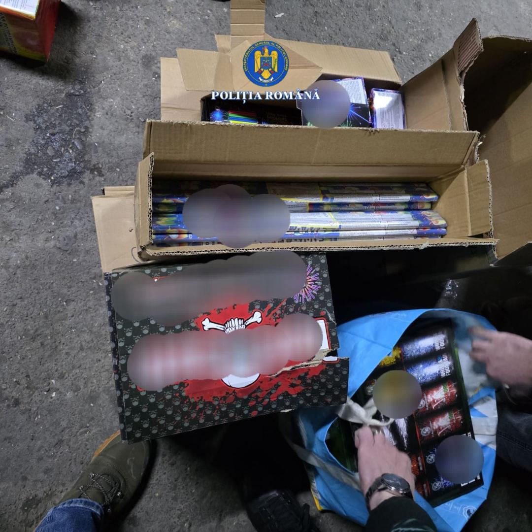 În urma percheziției efectuate la locuința unui bărbat, în vârstă de 59 de ani, au fost descoperite și ridicate 4 baterii de artificii din categoria F2, aproximativ 50 de kilograme de articole pirotehnice din categoria F1, depozitate în spații neautorizate, precum și aproximativ 40 de kilograme de pocnitori din categoriile P1, F3 și F4.