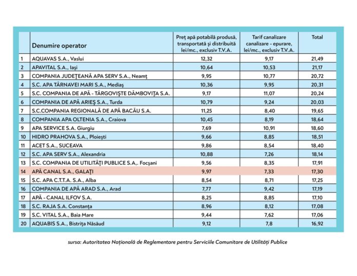 Astăzi vorbim despre prețul apei. Vi s-a tot spus că este cel mai mare din țară. Este o minciună sfruntată. Puteți vedea în tabelul atașat care este realitatea.