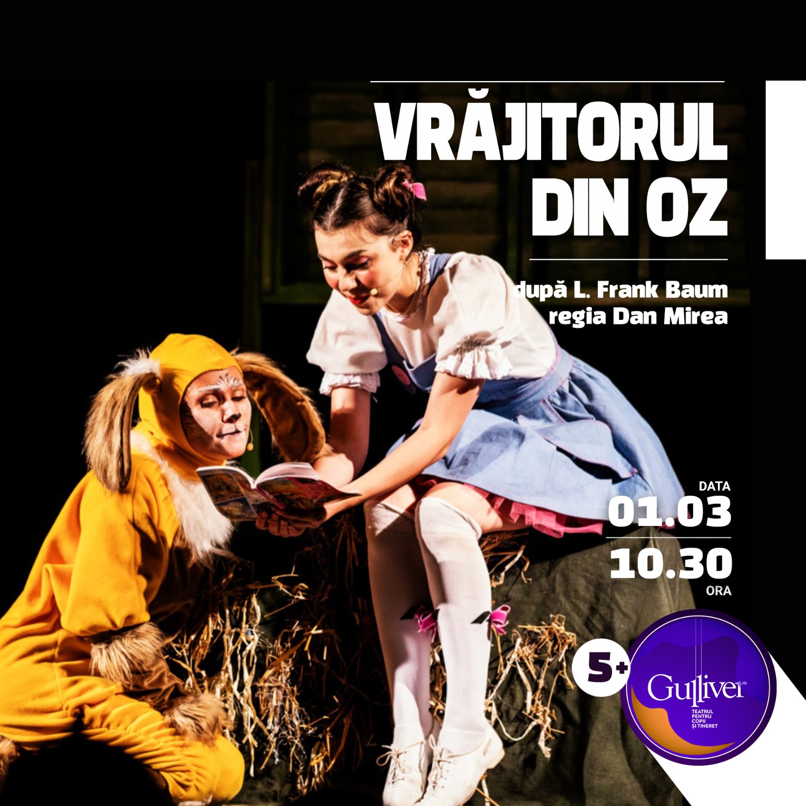 • Duminică, 1 martie, ora 10:30 – spectacolul, ”Vrăjitorul din Oz”, grupa de vârstă 5+